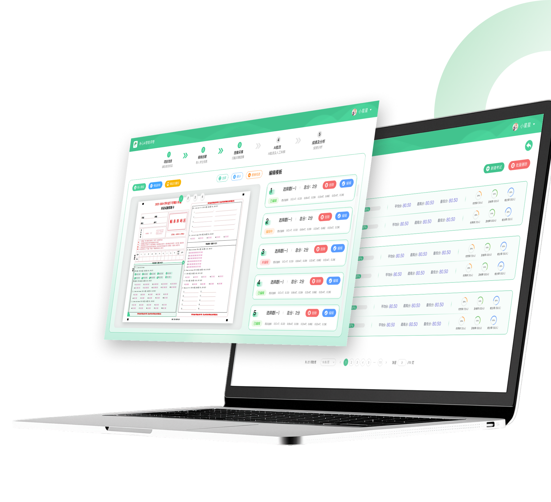 - •客观题处理:通过图像识别技术自动比对标准答案,完成填空题、选择题等题型的批改,准确率达100%,彻底消除人工误判。